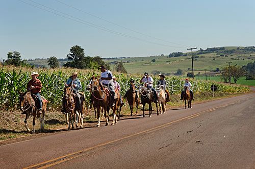 Keywords: Equino, Animal, Asfalto, Rodovia, Estrada, Transporte, Mula, Cavalo, Cavalgada, Cavaleiro, Grupo, Gente, Horizontal, Parana, 2011, Urai |