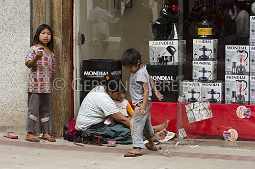 Keywords: Kaingang, Indigena, Indio, Nativo, Menina Criança, Menino Criança, Familia, Mulher, Adulta, Calçadao, 2011, Horizontal, Londrina, Parana, Gente, Urbano, Vitrine |