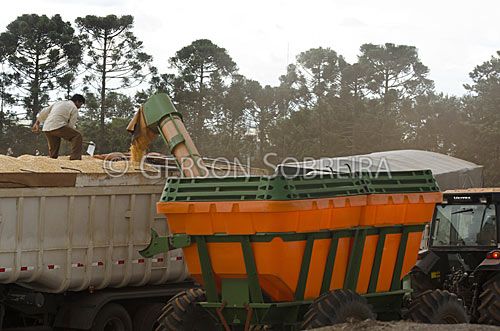 Keywords: Tanker, Tank, Equipment, Harvest, Handling, Zea mays, Corn, Cereal, Agriculture, 2011, Horizontal, Parana, Marilandia do Sul, Unload, Unloading, Heavy truck, Wagon, Grain |