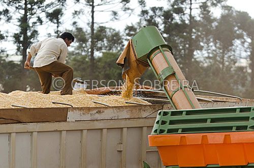 Keywords: Tanker, Tank, Equipment, Harvest, Handling, Zea mays, Corn, Cereal, Agriculture, 2011, Horizontal, Parana, Marilandia do Sul, Unload, Unloading, Heavy truck, Wagon, Grain  |