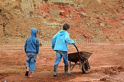Keywords: Perau, Barranco, Rocha, Pedra, Solo, Trabalho Infantil, 2011, Horizontal, Parana, Prudentopolis, Gente, Menino Criança, Equipamento, Carrinho de mao, Carriola |