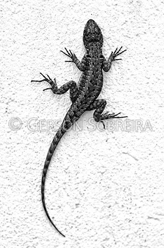 Vertical, Tropidurus itambere, Lagarto, Calango, Reptil, Fauna, Animal, Preto e Branco, Parana, Londrina, 2011