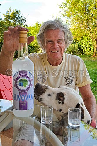 Keywords: Cambe, 2012, Parana, Gente, Homem, Adulto, Animal, Domestico, Cao Cachorro, Dalmata, Vertical, Bebida, Destilado, Slivovka, Garrafa, Copo |