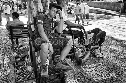 Keywords: Espera, Engraxate, Trabalho Infantil, Menino Criança, Praça, Calçadao, Londrina, Parana, 2012, Cidade, Urbano, Vertical, Gente, Sentado, Preto e Branco |