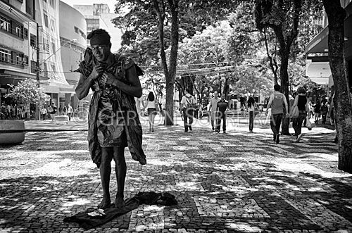 Keywords: Preto e Branco, Arte, Cultura, Performance, Estatua viva, Artista de rua, Trabalho, Homem, Rapaz, Jovem, Praça, Calçadao, Londrina, Parana, 2012, Cidade, Urbano, Gente, Horizontal |