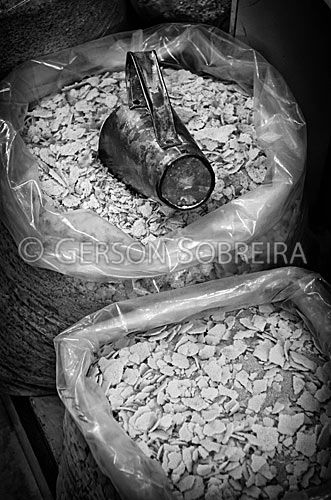 Keywords: Concha, Utensilio, Saco, Vertical, Stand, Mercearia, Farinha, Comercio, Venda, Goias, Mercado Central de Goiania, 2012, Preto e Branco |