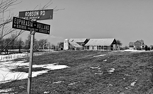 Keywords: Celeiro, Sinalizaçao, Placa, Rural, Paisagem, Horizontal, Preto e Branco, Fazenda, 2004, Markdale, Ontario, Canada, Neve |