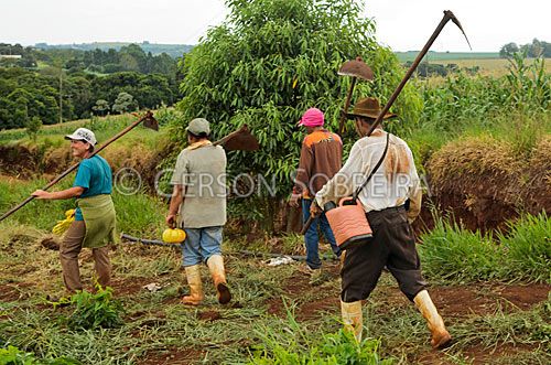 Keywords: Agricultura Agricola, 2012, Parana, Horizontal, Gente, Grupo, Homem, Adulto, Mulher, Adulta, Trabalho, Trabalhador rural, Enxada, Retorno, Andando, Caminhando, Retornando |