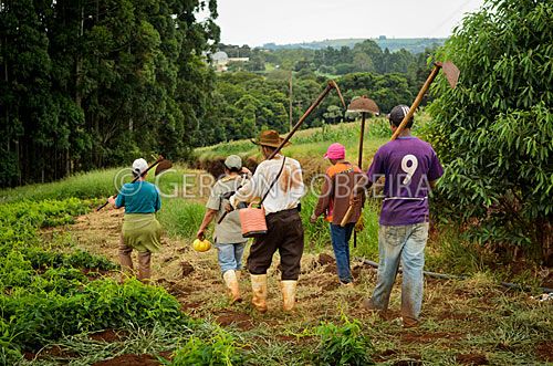 Keywords: Agricultura Agricola, 2012, Parana, Horizontal, Gente, Grupo, Homem, Adulto, Mulher, Adulta, Trabalho, Trabalhador rural, Enxada, Retorno, Andando, Caminhando, Retornando |