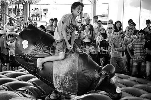 Keywords: Preto e Branco, Brinquedo, Diversao, Touro mecanico, Menino Criança, Gente, Exposiçao, Evento, Cascavel, 2012, Parana, Horizontal |