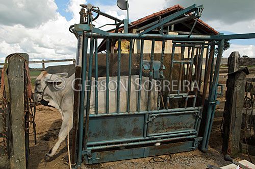 Keywords: Brahman, Gado Pecuaria, Bovino, Animal, Minas Gerais, 2012, Horizontal, Careaçu, Novilha, Casqueamento, Casco, Gente, Homem, Adulto, Casqueador, Equipamento, Brete, Movel |