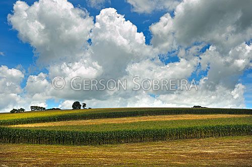 Keywords: Plantation, Rural, Cloud, Sky, Landscape, Maize field, Zea mays, Corn, Cereal, Agriculture, Horizontal, Careaçu, 2012, Minas Gerais |