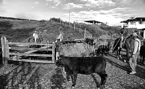 Keywords: Vaqueiro Peao Cowboy, Trabalho, Homem, Adulto, Gente, Apartaçao, Apartando, Careaçu, Horizontal, 2012, Minas Gerais, Preto e Branco, Animal, Gado Pecuaria, Bovino, Vaca, Aberdeen Angus, Curral |