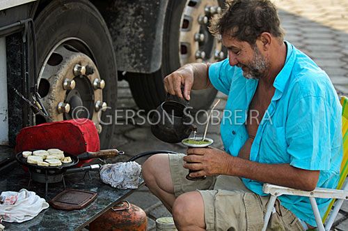Keywords: Heavy truck, Trucker, Gourd, Chimarrao, Mate tea, Drink, Preparing, Food, Aliment, Feeding, Man, Adult, People, Sao Paulo, Piraju, 2012, Horizontal, Kettle |