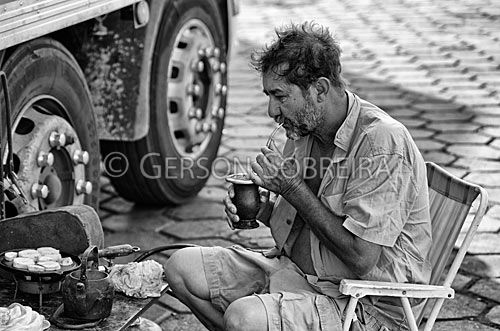 Keywords: Preto e Branco, Caminhao, Caminhoneiro, Cuia, Chimarrao, Erva-mate Erva mate, Bebida, Comida, Homem, Adulto, Gente, Sao Paulo, Piraju, 2012, Horizontal, Chaleira, Bebendo, Mateando |
