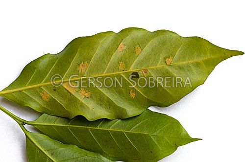 Keywords: Fundo branco, Hemileia coffeicolla, Ferrugem, Fungo, Doença, Coffea arabica, Cafe, Agricultura Agricola, 2012, Parana, Londrina, Horizontal, Folha |