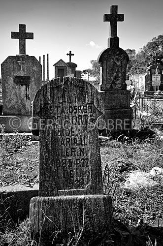 Keywords: Preto e Branco, Tumulo, Cruz, Cemiterio, Historia, Guerra do Contestado, Caraguata, Sao Sebastião do Sul, 2012, Santa Catarina, Lebon Regis, Vertical, Ruina, Degradado, Carcomido, Deteriorado, Lapide |
