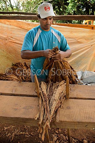 Título: Amarração de manocas de fumo tipo Burley |
