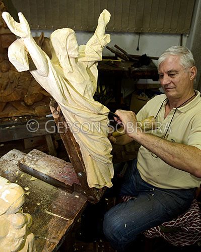 Keywords: Gente, 2012, Santa Catarina, Treze Tilias, Cultura, Arte, Escultura, Madeira, Sacra, Homem, Adulto, Escultor, Esculpindo, Cristo, Vertical  |