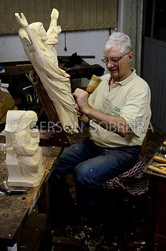 Keywords: Gente, 2012, Santa Catarina, Treze Tilias, Cultura, Arte, Escultura, Madeira, Sacra, Homem, Adulto, Escultor, Esculpindo, Cristo, Vertical |