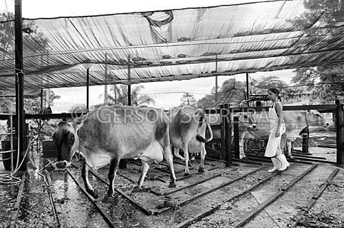 Keywords: Pre-ordenha, Sala de Espera, Goias, 2012, Horizontal, Jandaia, Gado Pecuaria, Bovino, Leiteira, Instalaçao rural, Leiteria, Animal, Vaca, Jersey, Ordenhador, Sombrite, Preto e Branco |