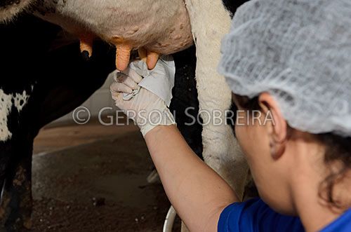 Keywords: Towel, Paper, Pre-dipping Pre dipping, Holstein Friesian, Holstein, Dutch, Dairy, Teat nipple, Udder, Cow, Cattle Livestock, Bovine, Animal, Goias, 2012, Horizontal, Piracanjuba, To milk |