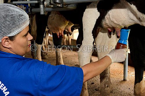 Keywords: To milk, Piracanjuba, Horizontal, 2012, Goias, Animal, Cattle Livestock, Bovine, Cow, Udder, Teat nipple, Dairy, Holstein Friesian, Holstein, Dutch, Pre-dipping Pre dipping, Disinfection, Disinfectant |