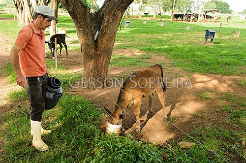 Keywords: Bebendo, Balde, Mamando, Amamentaçao, Alimentaçao Nutriçao, Bezerra, Jersolando, Horizontal, Leiteira, Gado Pecuaria, Bovino, Animal, Goias, 2012, Piracanjuba, Leite |