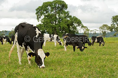 Título: Gado leiteiro pastando em grama Estrela |