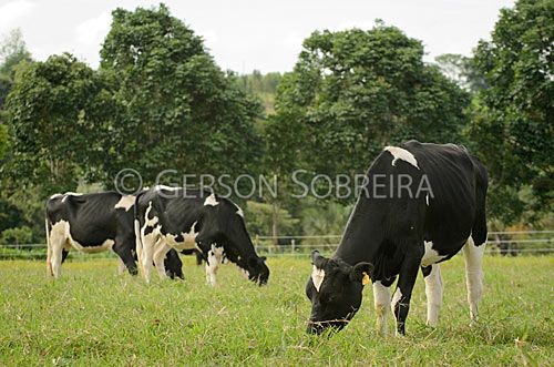 Título: Gado leiteiro pastando em grama Estrela |