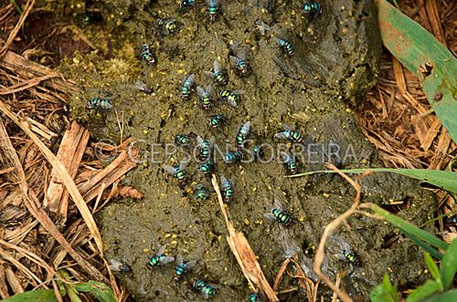 Título: Moscas Varejeira sobre estrume bovino em pasto |