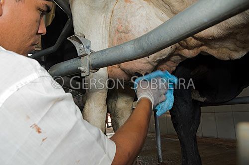Keywords: Towel, Paper, Drying, Pre-dipping Pre dipping, Girolando, Dairy, Cow, Horizontal, 2012, Inhumas, Goias, Animal, Cattle Livestock, Bovine, Handling, To milk, Teat nipple |