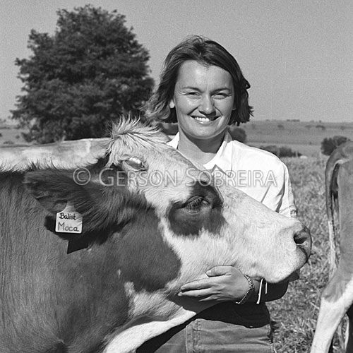 Keywords: Criadora, Quadrado, Rancharia, Sao Paulo, Sorrindo, Sorriso, Mulher, Moça, Jovem, Simental, Vaca, Gado Pecuaria, Bovino, Animal, 1997, Gente, Preto e Branco |