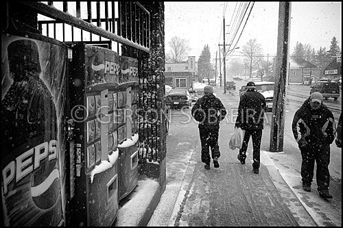 Keywords: Calçada, Grupo, Andando, Nevando, Frio, Mercado, Rua, Urbano, Canada, Ontario, Markdale, Preto e Branco, 2005, Horizontal, Neve |