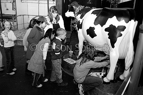 Keywords: Ordenhando, Ordenha, Menina Criança, Grupo, Gente, Boneco, Escultura, Canada, Ontario, Preto e Branco, Horizontal, Toronto, Royal Winter Fair 2006, Animal, Gado Pecuaria, Bovino, Vaca |