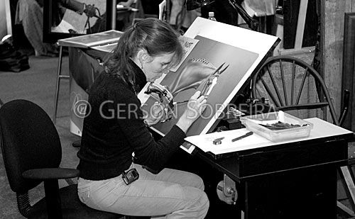 Keywords: Desenho, Desenhando, Desenhista, Mulher, Adulta, Royal Winter Fair 2006, Toronto, Horizontal, Preto e Branco, Ontario, Canada |