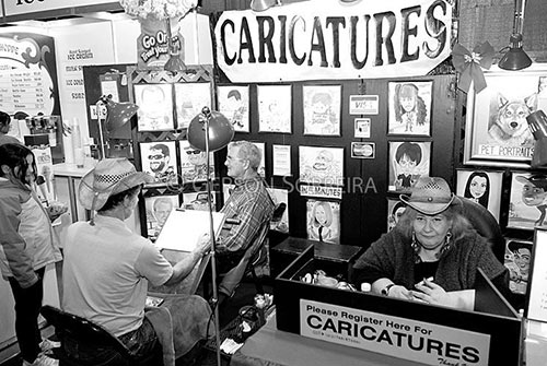 Keywords: Caricaturista, Caricatura, Canada, Ontario, Preto e Branco, Horizontal, Toronto, Royal Winter Fair 2006, Mulher, Adulta, Desenhista, Desenhando, Desenho |
