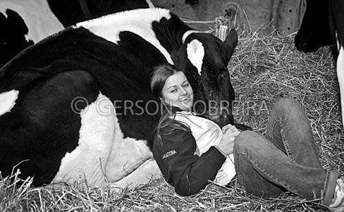 Keywords: Descanso, Descansando, Deitado, Mulher, Moça, Jovem, Holstein, Holandes, Holandesa, Canada, Ontario, Preto e Branco, Horizontal, Toronto, Royal Winter Fair 2006, Animal, Gado Pecuaria, Bovino, Vaca  |