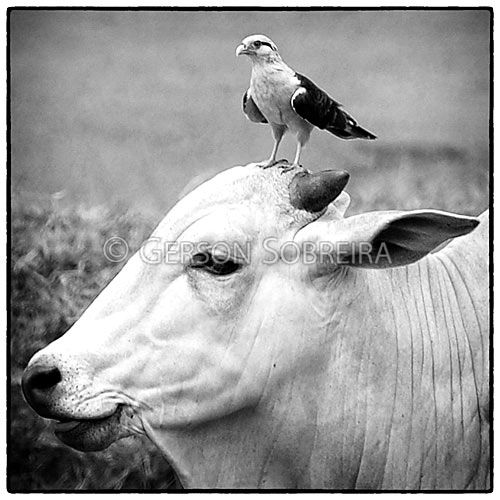Keywords: 2007, Parana, Preto e Branco, Quadrado, Gado Pecuaria, Bovino, Fauna, Animal, Ave, Passaro, Gaviao, Gaviao-carrapateiro, Milvago chimachima, Amapora, Simbiose |