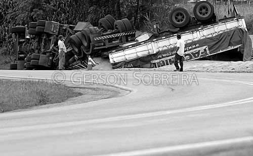 Keywords: Caminhao, Capotamento, Acidente, Rodovia, Estrada, Transporte, Iguaraçu, 2007, Escuro, Horizontal, Preto e Branco, Parana |