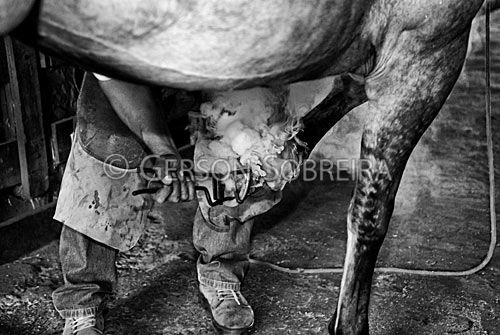 Keywords: Casco, Fumaça, Ferrando, Ferrador, Pinça, Incandescente, 2007, Horizontal, Preto e Branco, Parana, Santa Fe, Ferradura, Animal, Equino, Ferrageamento |