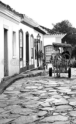 Keywords: 2003, Minas Gerais, Tiradentes, Vertical, Preto e Branco, Cidade, Urbano, Patrimonio historico, Casario, Ladeira, Calçamento, Pedra, Carroça, Carruagem |