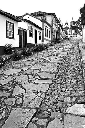 Keywords: Pedra, Calçamento, Ladeira, Casario, Patrimonio historico, Cidade, Urbano, Preto e Branco, Vertical, Tiradentes, Minas Gerais, 2003 |