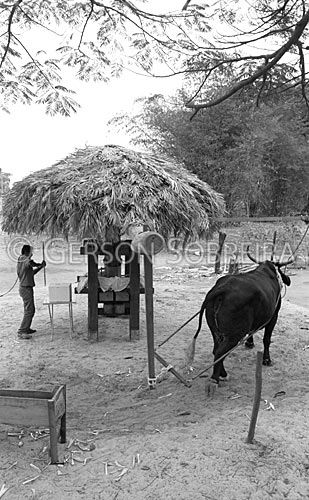 Cana-de-açucar Cana de açucar, Moedor, Goias, Morrinhos, Boi, 1998, Engenho, Vertical, Preto e Branco