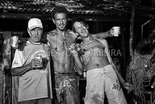 Keywords: Carregador, Festejando, Bebendo, Bebida, Sorrindo, Sorriso, Nativo, Grupo, Gente, Horizontal, 2008, Preto e Branco, Parana, Ilha do Mel, Praia, Litoral |