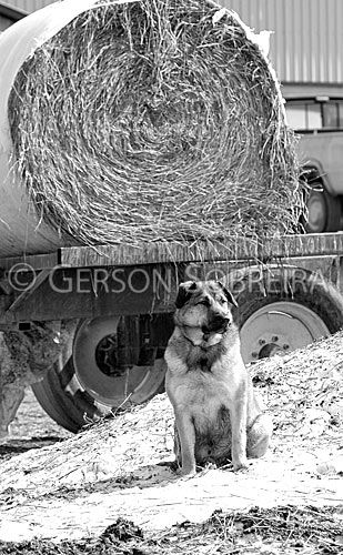 Keywords: Vertical, Black and white, Markdale, Ontario, Canada, 2004, Animal, Domestic, Dog, Snow, Hay |