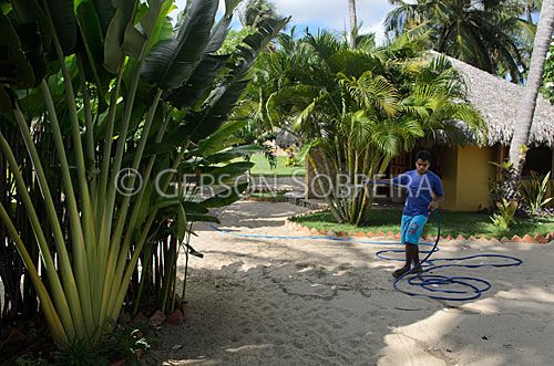 Keywords: Ravenala madagascariensis, Palmeira-dos-viajantes, Palmeira, Arecaceae, Barra Grande, Cajueiro da Praia, Piaui, 2012, Pousada, Horizontal, Jardim, Regando |