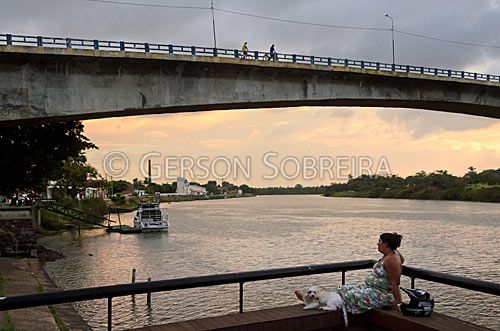 Keywords: Porto das Barcas, Ponte, Por-do-sol Por do sol, Paisagem, Cao, Mulher, Horizontal, 2012, Piaui, Parnaiba, Rio Igaraçu |