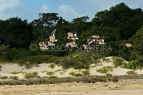 Keywords: Ilha Grande, 2012, Piaui, Delta do Rio Parnaiba, Horizontal, Praia, Fauna, Animal, Ave, Passaro, Nativo, Piru-piru, Haematopus palliatus, Bando |