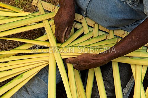 Título: Trançando folha de babaçu para telhado |
